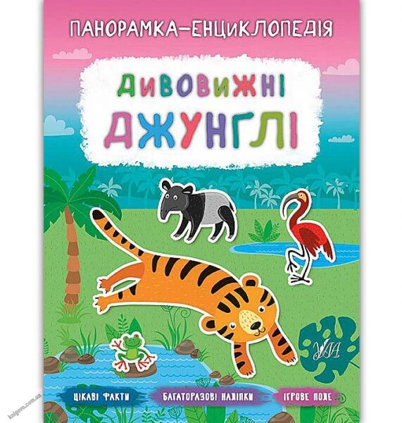 Панорамка-енциклопедія Дивовижні джунглі. Ця книжка познайомить малюків з тваринним світом джунглів. Видання розширить кругозір дитини, допоможе розвинути творче мислення, фантазію та кмітливість, а також покращить дрібну моторику пальців рук, що сприятиме вдосконаленню мовлення.