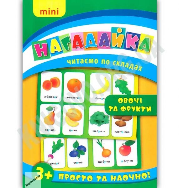Mini нагадайка Овочі та фрукти Читаємо по складах 3+ Вид: УЛА