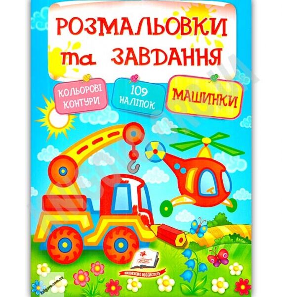 Розмальовки та завдання Машинки 109 наліпок. Велика книга розмальовок для малюків. У ній багато різних видів машин, які потрібно розфарбувати. А ще вирішити цікаві розвиваючі завдання. Прикрасити книгу допоможуть барвисті наліпки. Книга допоможе дітям розвинути увагу, пам’ять, логічне мислення, вивчити перші англійські слова і підготувати руку до письма.