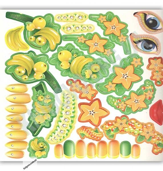 Школа краси Фруктовий бум Створи свій новий образ Справжній стиліст Багаторазові наліпки. Якщо ти юна модниця, то ця чудова книжка для тебе! У ній ти зможеш створювати і наклеювати дівчатам ультрамодні макіяжі, манікюр і прикраси. Елементи макіяжу і манікюру, сережки, кільця, браслети, діадеми і багато іншого ти знайдеш на аркушах з багаторазовими наліпками. Дай волю фантазії і продемонструй різноманіття образів!