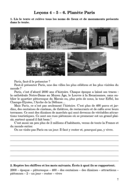 Творчі завдання зошита стимулюють учнів до висловлення власної думки і спілкування французькою мовою в письмовій формі. Вправи зошита призначені для виконання учнями як на уроці, так і самостійно вдома.