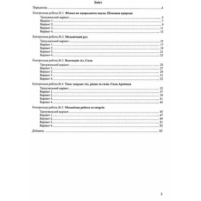 Посібник містить 5 тематичних контрольних робіт, кожна з яких складається з п’яти рівноцінних варіантів. Завдання дібрано відповідно до чинної програми, підручників та методичних рекомендацій.