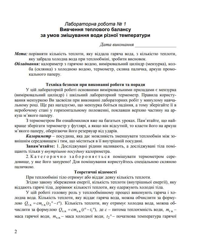 Для виконання лабораторних робіт пропонується використовувати обладнання фабрично-заводського виробництва. У кожній роботі даються методичні поради та звертається увага на техніку безпеки, охорону здоров’я та життєдіяльності учнів при виконанні експериментів.