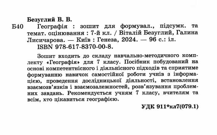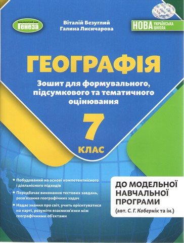 Зошит для формувального, підсумкового та тематичного оцінювання Географія 7 клас НУШ Авт: Безуглий В. Лисичарова Г. Вид-во: Генеза 101253