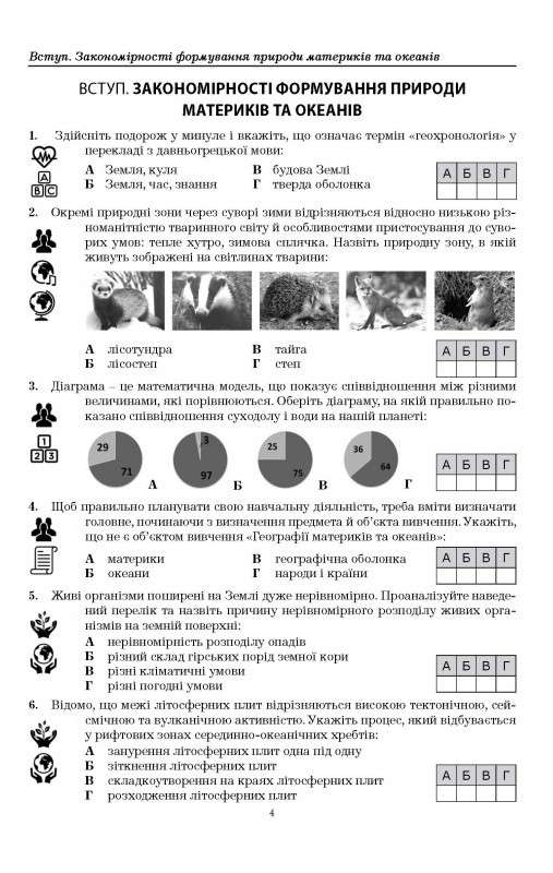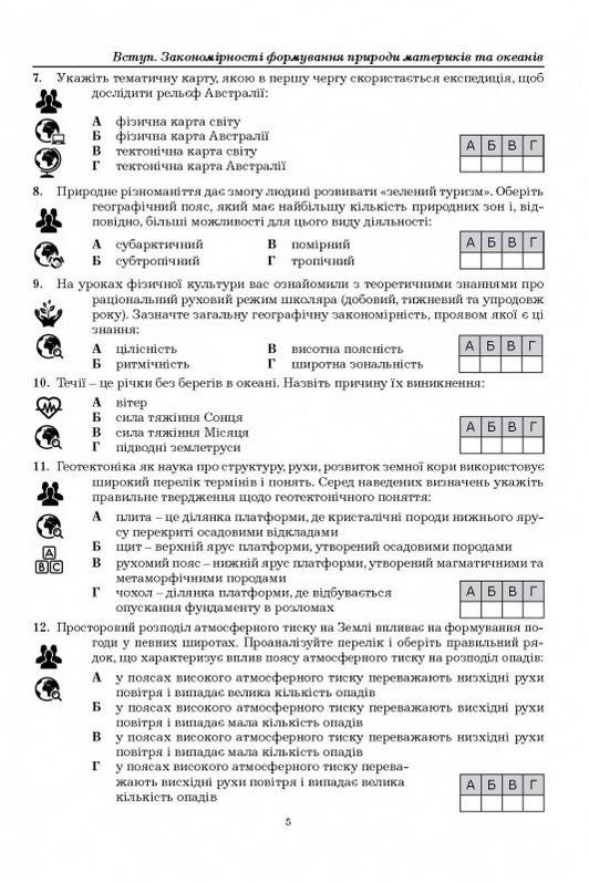 Посібник призначений для учнів 7-го класу, випускників закладів освіти, абітурієнтів, які готуються до зовнішнього незалежного оцінювання, та вчителів географії.