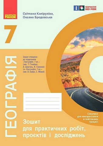 Зошит для практичних робіт, проєктів і досліджень Географія 7 клас НУШ До підручника Т. Гільберг та ін. Авт: С. Капіруліна О. Бродовська Вид-во: Ранок 111921