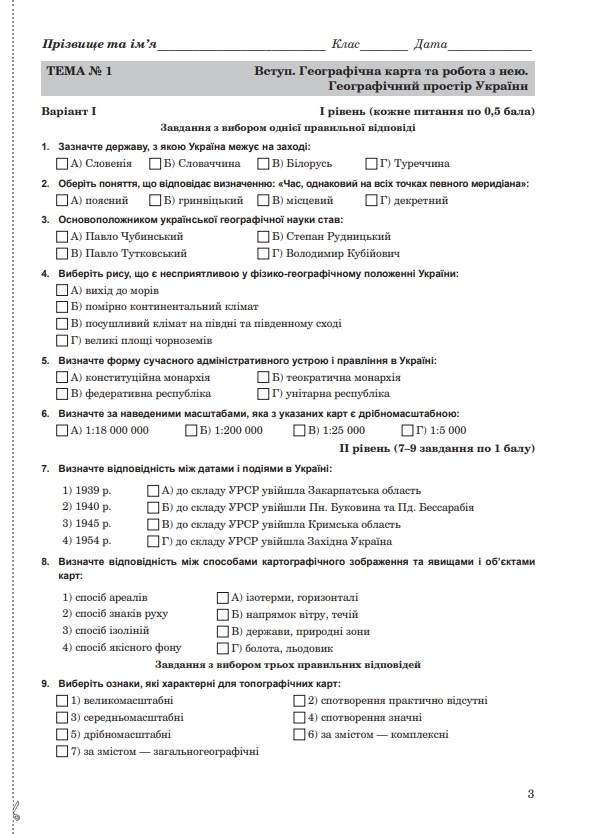 Завдання розроблено з урахуванням вимог щодо критеріїв оцінювання основних компетентностей учнів та укладено в два варіанти для кожної теми курсу. Мета зошита забезпечити об’єктивне оцінювання восьмикласників як під час проведення уроків корекції, перевірки або оцінювання досягнення компетентностей, так і під час проведення поточних уроків з використанням фрагментів завдань при вивченні відповідних тем.