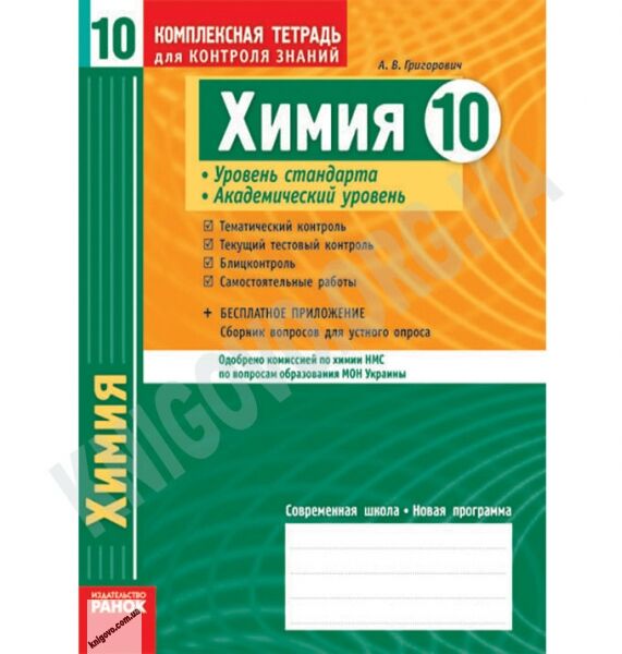 Химия 10 класс Стандарт Академ Комплексная тетрадь для контроля знаний Авт: Григорович А. Изд-во: Ранок - фото 1