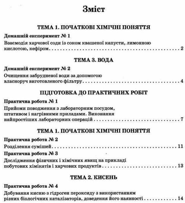 Посібник містить лабораторні досліди і практичні роботи, передбачені чинною програмою з хімії для 7 класу загальноосвітніх навчальних закладів до будь-якого чинного підручника Хімія 7 клас Нова програма. У зошиті наведений класичний варіант проведення робіт. До кожної з них є посилання на сторінку Інтернету з відео, що демонструє виконання роботи. У додатку вміщені розробки домашніх експериментів і матеріали, що стануть у нагоді під час підготовки до практичних робіт.