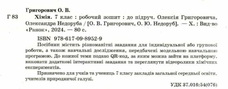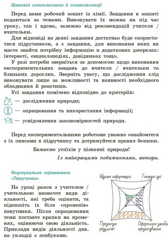 \nЗошит стане надійним супутником під час роботи на уроці та при виконанні домашніх завдань, допоможе учням і ученицям пізнати хімію та перетворить навчання на захопливу подорож!