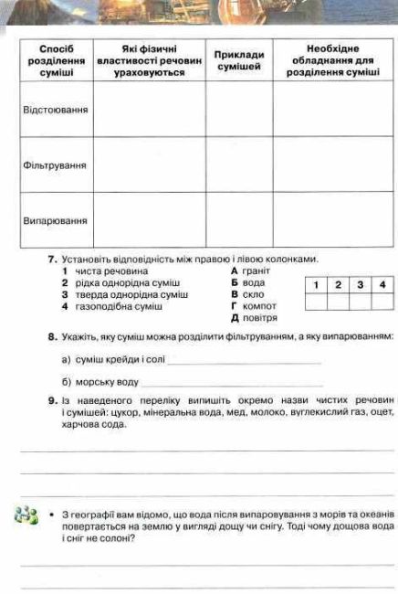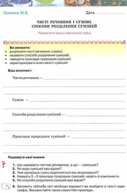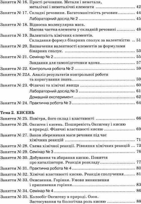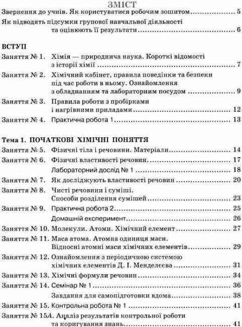 Робочий зошит з хімії для 7 класу за Новою програмою призначений для конспектування нового навчального матеріалу у ході його пояснення вчителем, записів додаткової, самостійно здобутої інформації, виконання домашніх завдань і вправ, оформлення результатів виконання лабораторних дослідів і навчальних проектів, підготовки до практичних і контрольних робіт. Особливістю зошита є те, що до його змісту увійшли семінари, проведення яких передбачає спільну навчальну діяльність у складі малих груп. Така форма занять розвиває уміння спілкуватись, сприяє ефективному усвідомленню і засвоєнню знань, передбачає їх перевірку однокласниками та самоперевірку. Навчальний посібник може використовуватись незалежно від того, за підручником яких авторів здійснюється навчання хімії у школі.