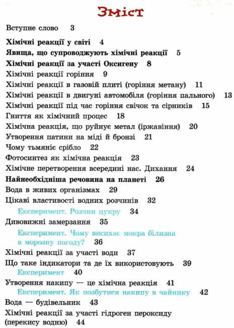 У посібнику запропоновано найпростіші хімічні реакції, з якими ми стикаємося чи не щодня, експерименти, які можна повторити в домашніх умовах, подано необхідні теоретичні відомості, наведено цікаві факти з історії хімії.