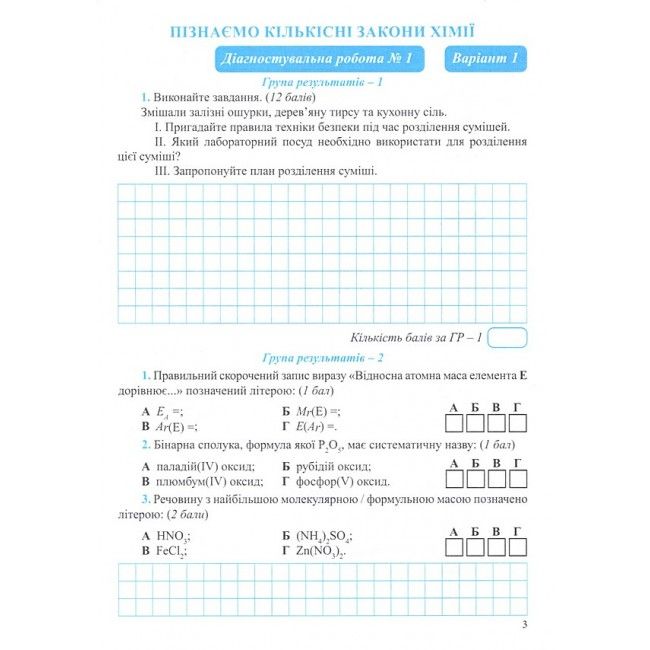 Видання буде корисним учням 8 класу та вчителям хімії, сприяючи системному оцінюванню навчальних досягнень, підвищенню ефективності навчального процесу та розвитку практичних навичок роботи з хімічними завданнями.