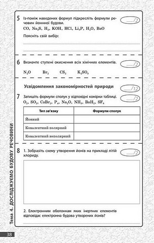 Поточне та підсумкове оцінювання за групами результатів Хімія 8 клас НУШ Авт: Недоруб О.Ю. Григорович О.В. Вид-во: Ранок 112055