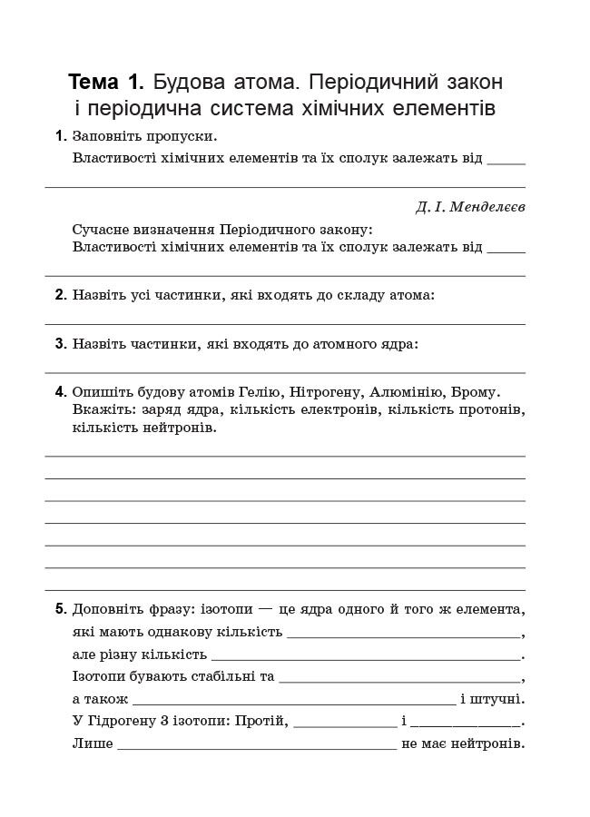 У зошиті представлені завдання до всіх тем курсу, що дозволяє учням послідовно закріплювати знання і готуватися до уроків. Особлива увага приділена розділу, де містяться лабораторні досліди та практичні роботи, а також додаткові завдання до них.