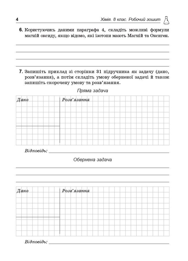 Робочий зошит призначений для виконання учнями завдань в класі і вдома. Він допомагає систематизувати навчальний процес та забезпечує можливість ефективної роботи з матеріалом відповідно до чинної програми 8 класу.