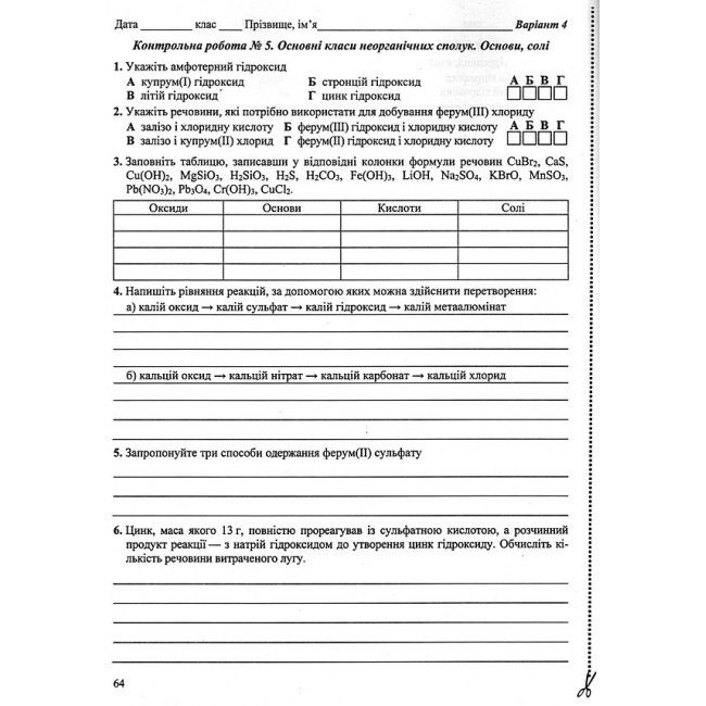 Крім того, посібник містить п’ять тематичних контрольних робіт, кожна з яких подана у чотирьох варіантах, що забезпечує об’єктивність оцінювання та зручність використання під час уроків або самостійної роботи вдома.