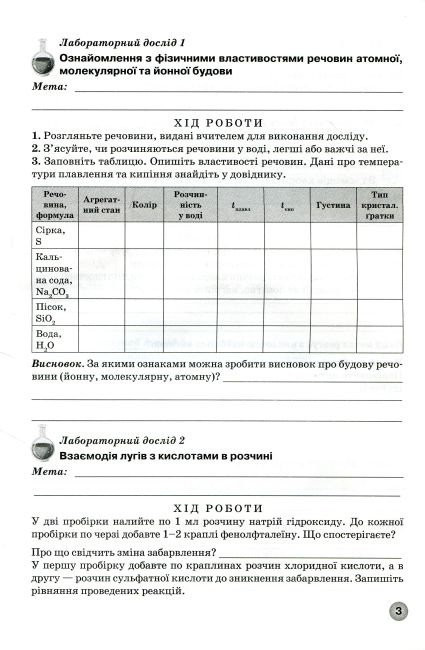 Зошит для практичних робіт та тематичного контролю знань з хімії для учнів 8 класу Програма 2021 Авт: Михайлова І. Г. Іванащенко О. А.А. В. Путніков Вид-во: Школяр 92121
