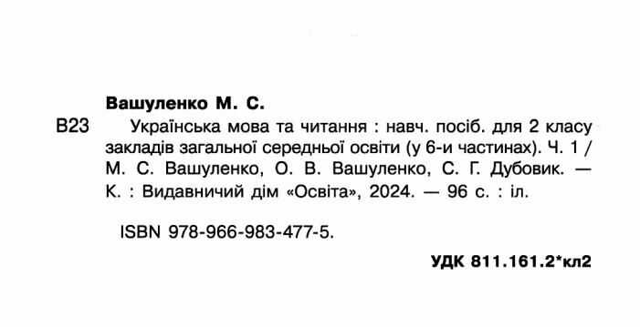 Навчальний посібник Українська мова та читання 2 клас у 6-и частинах Частина 1 НУШ Авт: М. Вашуленко О. Вашуленко С. Дубовик Вид-во: Освіта 99968