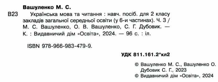 Навчальний посібник Українська мова та читання 2 клас у 6-и частинах Частина 3 НУШ Авт: М. Вашуленко О. Вашуленко С. Дубовик Вид-во: Освіта 99967