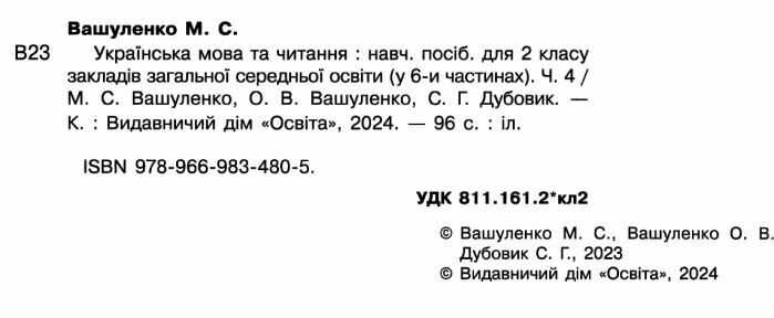Навчальний посібник Українська мова та читання 2 клас у 6-и частинах Частина 4 НУШ Авт: М. Вашуленко О. Вашуленко С. Дубовик Вид-во: Освіта 99969