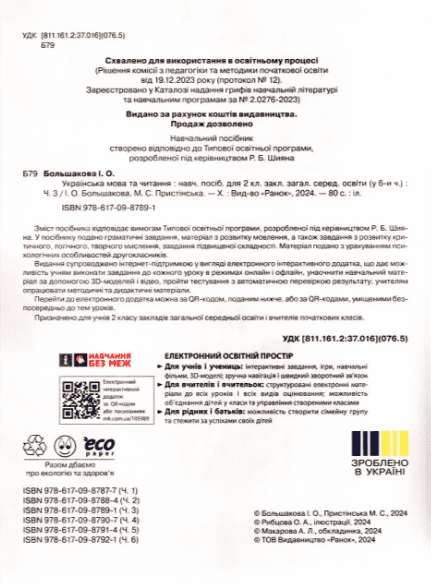 Навчальний посібник Українська мова та читання 2 клас у 6-ти частинах Частина 3 НУШ Авт: М. Пристінська І. Большакова Вид-во: Ранок 99917