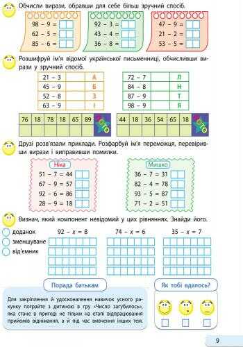 Часто трапляються помилки у додаванні або відніманні? Стануть у нагоді зошити Розв'язую, обчислюю, де відпрацьовується нумерація чисел, склад числа, різні способи додавання й віднімання тощо.