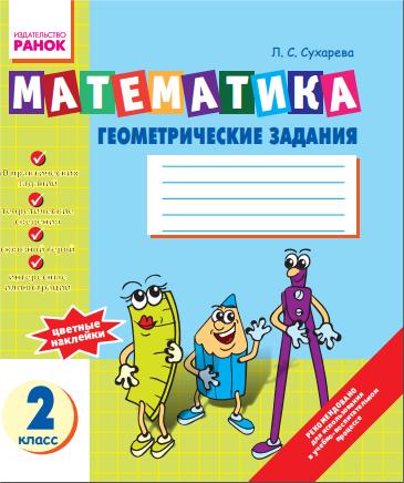 Геометрические задания Тетрадь для 2 класса Математика Сухарева Л. Ранок. Материал пособия соответствует действующей программе по курсу математики в начальной школе.Предложенные задания помогут второклассникам усвоить необходимый теоретический минимум по геометрии, научиться распознавать геометрические фигуры и тела, строить гео-метрические фигуры и вычислять их периметры и площади, выполнять задания на развитие внимания и пространственного воображения.