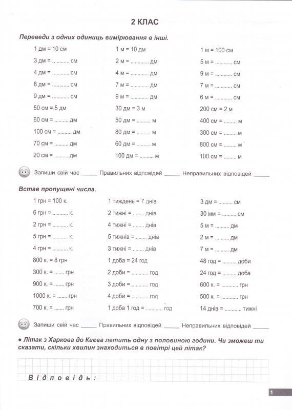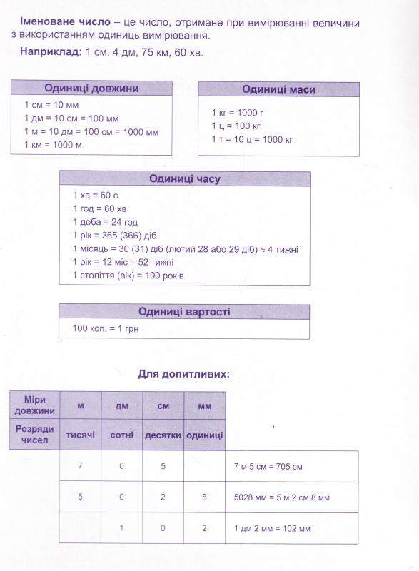 Цей посібник призначений учням 2-3 класів та їхнім батькам, які прагнуть допомогти дитині в навчанні й бажають перевірити рівень успішності маленького школяра. Посібник містить близько 1000 прикладів, що допоможуть учню опанувати міри вимірювання і легко розв'язувати завдання. Також робочій зошит стане у пригоді вчителям початкової школи при придбанні дидактичного матеріалу.