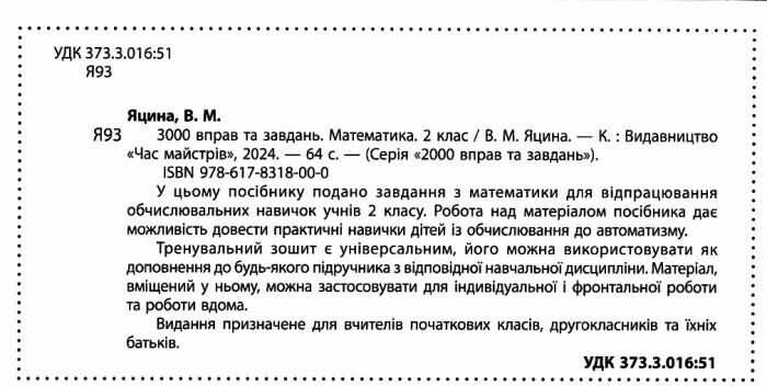 Математика 2 клас 3000 вправ та завдань НУШ Яцина В. Час майстрів