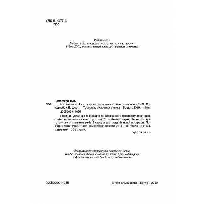 Математика 2 клас Картки для поточного контролю знань НУШ Авт: Походжай Н. Вид: Богдан