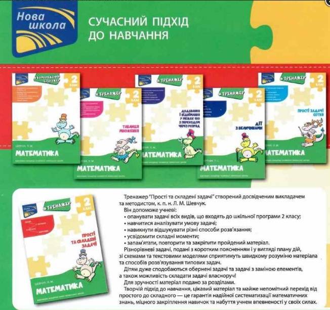 Математика Тренажер Прості та складені задачі 2 клас НУШ Нова школа Шевчук Л. АССА. Хочете перетворити навчання дитини на веселу гру? З тренажером це можливо!
