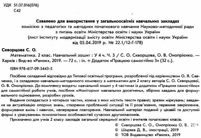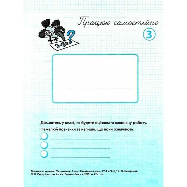 Навчальний зошит Математика 2 клас Частина 3 НУШ. Посібник складений відповідно до Типової освітньої програми, розробленої під керівництвом О. Я. Савченко, і є складовою навчально-методичного комлексу з математики для 2 класу авторів С. О. Скворцової, О. В. Онопрієнко.