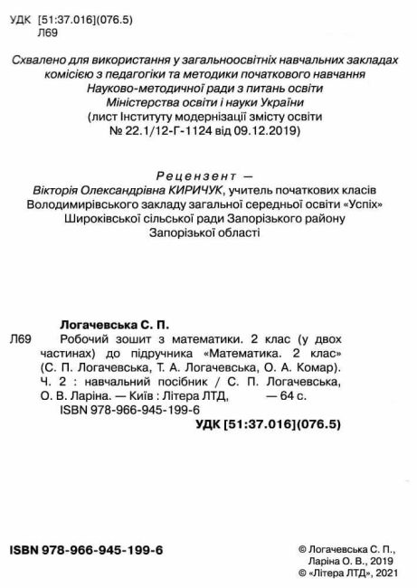 Робочий зошит Математика 2 клас Частина друга до підручника Логачевської С. НУШ 2-ге вид. Літера. Робочий зошит з математики у двох частинах до підручника містить цікавий і корисний навчальний матеріал, спрямований на оптимізацію навчального процесу.