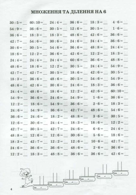 Математичний тренажер для учнів 2-х, 4-х класів за програмою Нової української школи. Тренажер із математики 2-4 клас Табличне множення та ділення чисел 6-9 Сметана О. НУШ ПЕТ