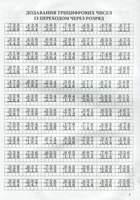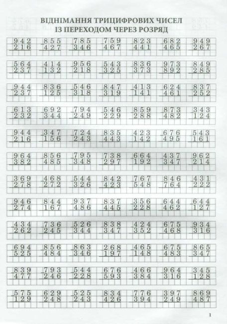 Тренажер з математики Додавання та віднімання в стопчик із переходом через разряд 2-4 клас НУШ ПЕТ