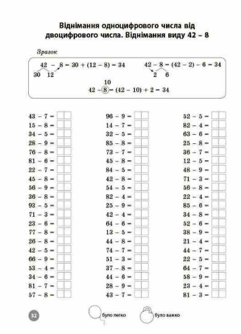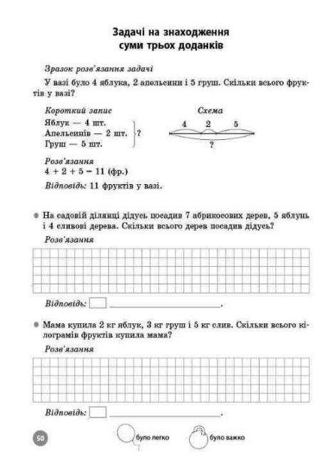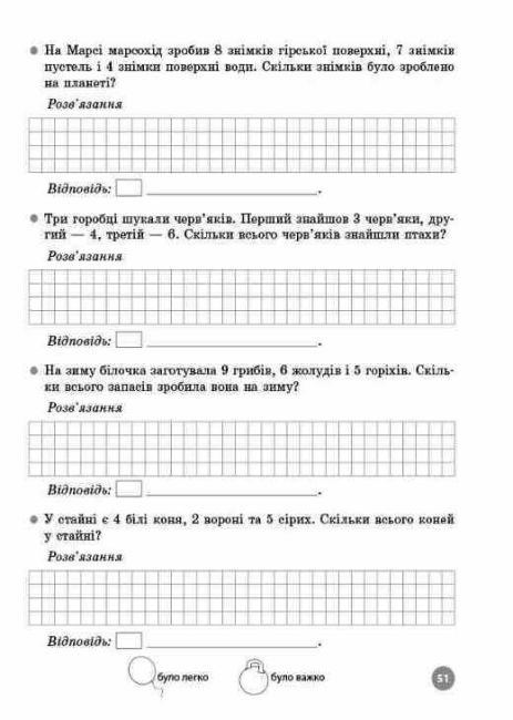 У посібнику наведено умовні позначки, за допомогою яких учні можуть оцінити свої уміння після виконання завдань: було важко або було легко. Посібник стане в пригоді як для самостійної роботи, так і для використання