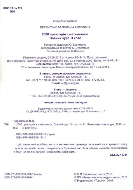 Практикум 2000 прикладів з математики 3 клас Повний курс Авт: Перемітько В. Вид-во: Торсінг