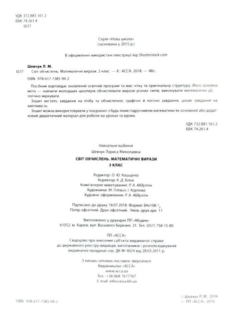 Світ обчислень Математичні вирази з наліпками 3 клас Нова школа Шевчук Л. АССА