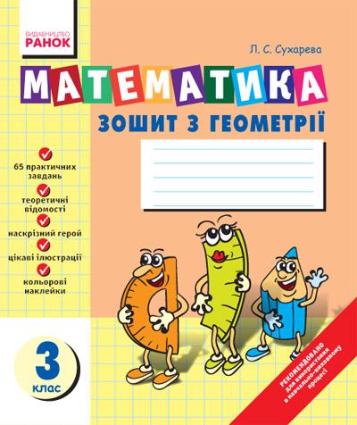 Зошит з геометрії Математика 3 клас Сухарева Л. Ранок. Матеріал посібника відповідає чинній програмі з курсу математики в початковій школі.