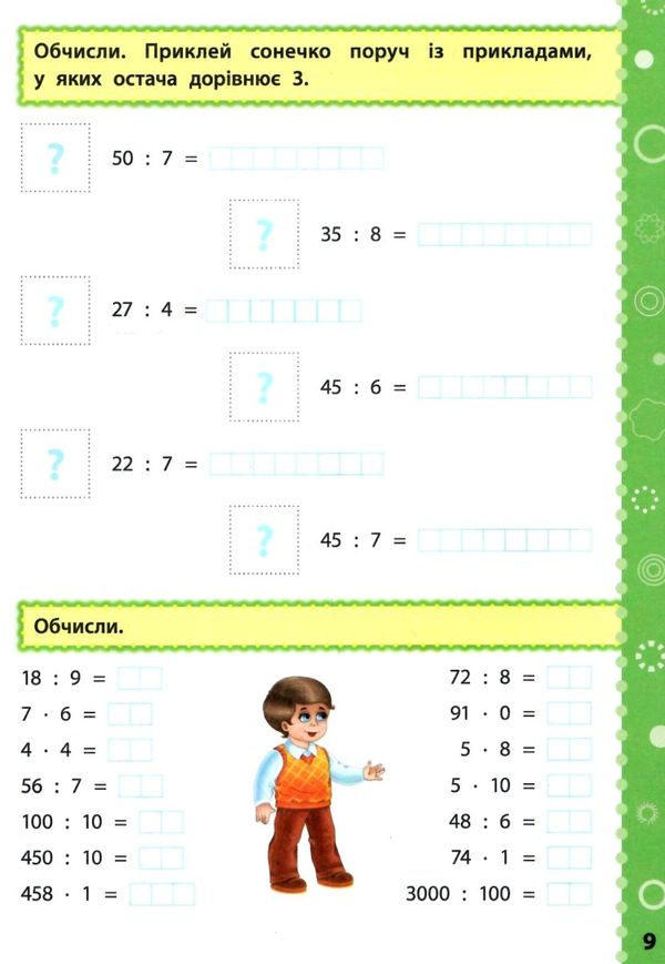 Видання охоплює матеріал 3 класу з предмета «Математика» і відповідає вимогам освітніх програм математичної галузі Нової української школи. Ігрова форма завдань, 100 наліпок і яскраві ілюстрації допоможуть легко сформувати ключові компетентності дитини та закріпити набуті в школі знання.