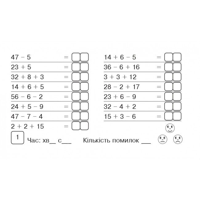 Картка "тренажера" включає 10-20 виразів та одну задачу.