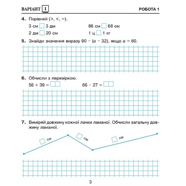 Математика 3 клас Діагностичні роботи НУШ До підр. Скворцової, Онопрієнко Богдан. У посібнику подано матеріал, який відповідає Державному стандарту початкової освіти, Типовій освітній програмі, розробленій під керівництвом О. Я. Савченко, та підручнику «Математика. 3 кл.» у 2-х част. (авт. Скворцова С.О., Онопрієнко О.В.).