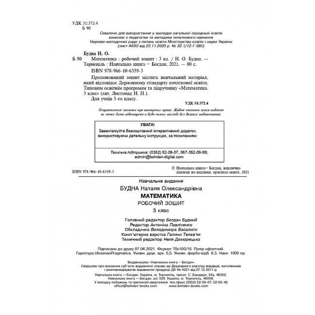 Математика 3 клас Робочий зошит до підручника Листопад Н. НУШ Будна Н. Богдан. Пропонований зошит містить навчальний матеріал, який відповідає Державному стандарту початкової освіти, Типовим освітнім програмам та підручнику «Математика. 3 клас» (авт. Листопад Н. П.).