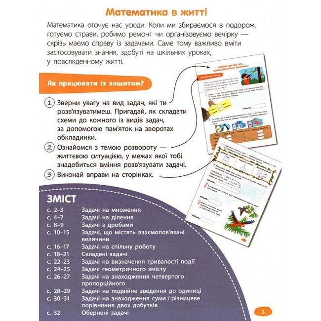 У зошиті розглядаються усі види задач, що вивчаються в поточному класі, але через призму життєвих ситуацій, у яких може бути застосоване розв’язання задач.