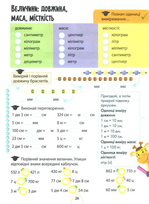 Непосидючі герої зошита — миша та жирафа — не можуть ні дня без пригод. Вони пізнають світ і разом з тим навчаються. Із веселими друзями ваш школяр швидко та залюбки оновить у пам'яті шкільну програму та опанує нові знання. Миша та жирафа надаватимуть йому підказки з найважливіших та найскладніших питань і доступно пояснюватимуть нові теми. Посібник містить усі необхідні теми з предмета в ігрових завданнях, завдяки чому ваш школяр точно не занудьгує.