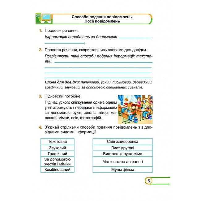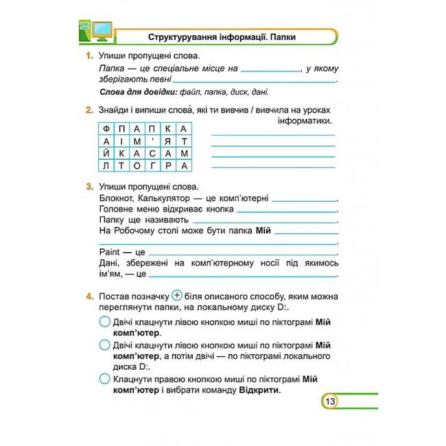 Поряд із вправами з розвитку інформатичних навичок дібрано завдання розвивального та логічного характеру.