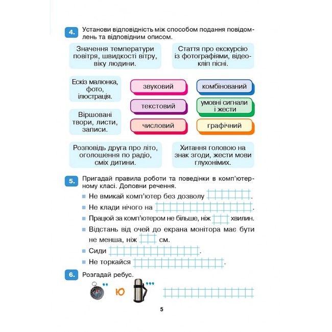 Запропоновані в зошиті завдання сприяють закріпленню та поглибленню знань і вмінь з основ інформатики, розвивають логічне й творче мислення, кмітливість і спостережливість.