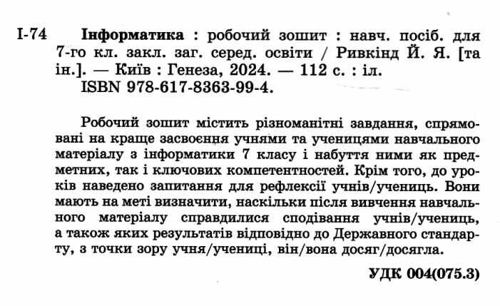 Робочий зошит Інформатика 7клас НУШ Авт: Ривкінд Й.Я. та ін. Вид-во: Генеза 101252