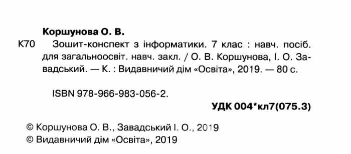 Зошит-конспект з інформатики 7 клас Коршунова О. Освіта